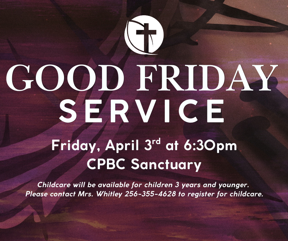 We invite you to join us for our Good Friday Service on Friday, April 3rd, at 6:30 PM in the Sanctuary. This meaningful time of reflection and worship will focus on remembering Christ’s sacrifice and the depth of His love for us.